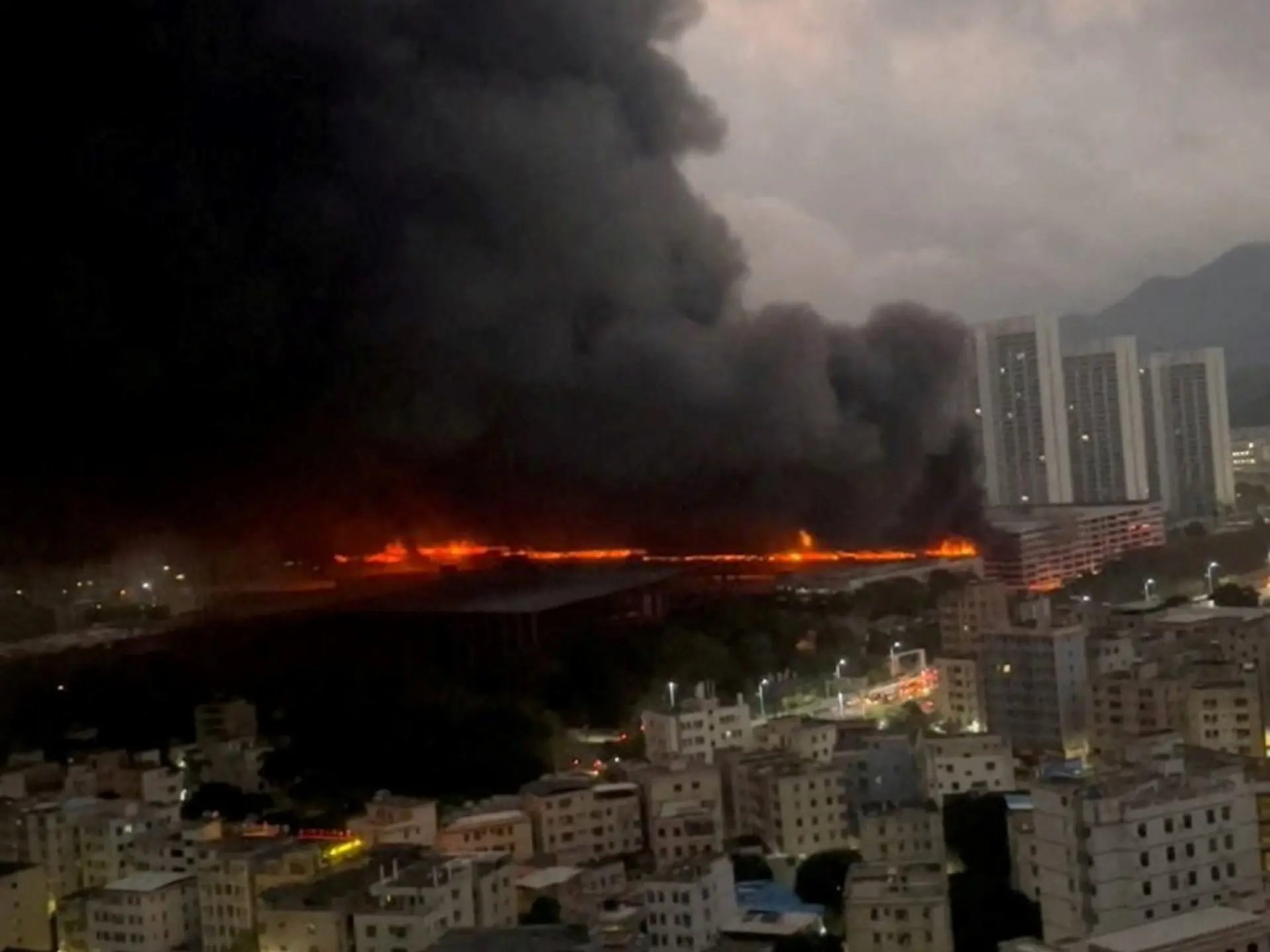 Gruesas columnas de humo negro se distinguían a varios kilómetros de distancia del distrito de Pingshan, donde se encuentra la sede central de BYD (acrónimo de Build Your Dreams, "construí tus sueños" en inglés).