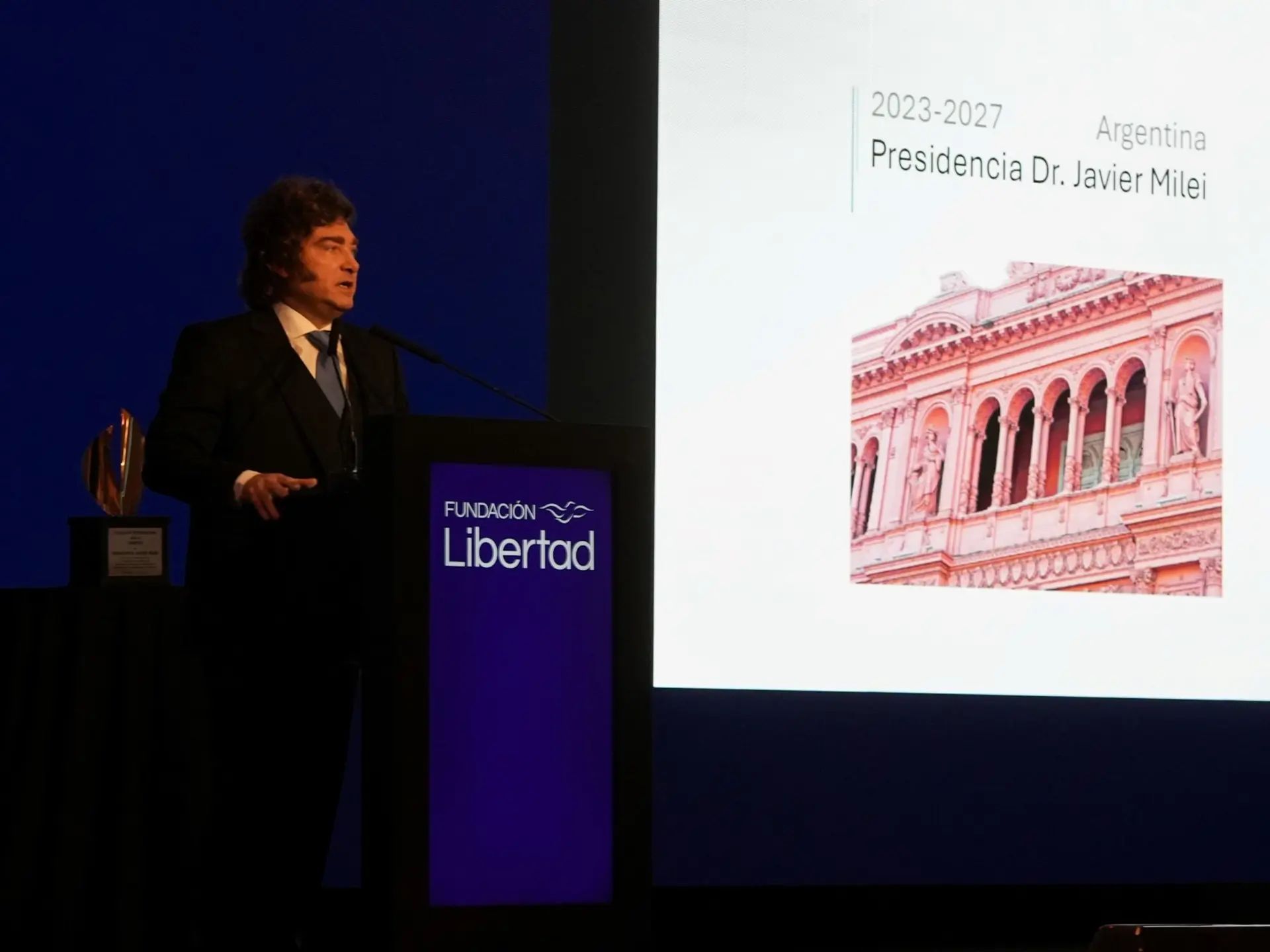 밀레이의 자유주의 사상의 주요 옹호자인 알베르토 베네가스 린치(h)로부터 상을 받은 후 진행된 긴 연설에서, 대통령은 "조만간 인플레이션이 하락할 것"이라고 약속했습니다.