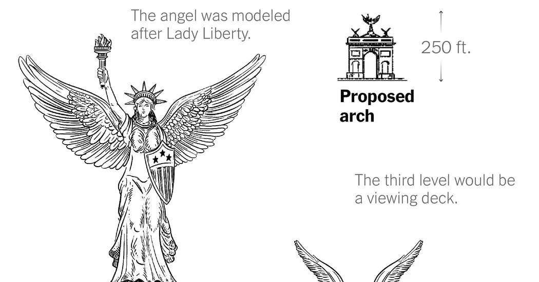 A federal panel approved early designs for Trump’s 250-foot-tall triumphal arch yesterday. The decision was hardly a surprise: The committee members were all appointed by Trump. It doesn’t make the structure inevitable — a group of Vietnam veterans has already filed a lawsuit against it, and Congress might get involved — but the vote started a process that could dramatically change the skyline of the nation’s capital. The arch, and its height, are meant to commemorate America’s 250th anniversary.The Commission of Fine Arts didn’t rubber-stamp the plan. One member suggested that it lose some lions (which are not native to the United States), the golden eagles on the viewing deck and a winged angel on top. There’ll be another vote down the line.