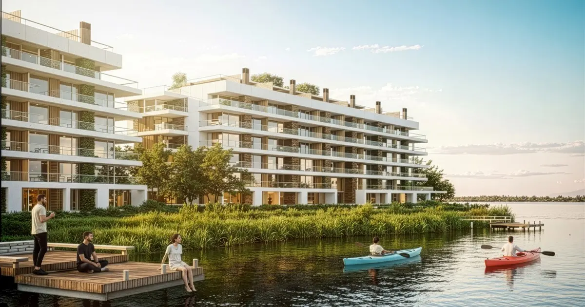 A partir de esa base, se incorporan tres capas de uso que en varios proyectos del mercado suelen estar dispersas, asegura el arquitecto. “Vivienda, en unidades con expansión, ventilación cruzada y relación directa con el exterior; trabajo, en espacios de coworking dentro del complejo; y tiempo personal, con infraestructura recreativa vinculada a la laguna”.