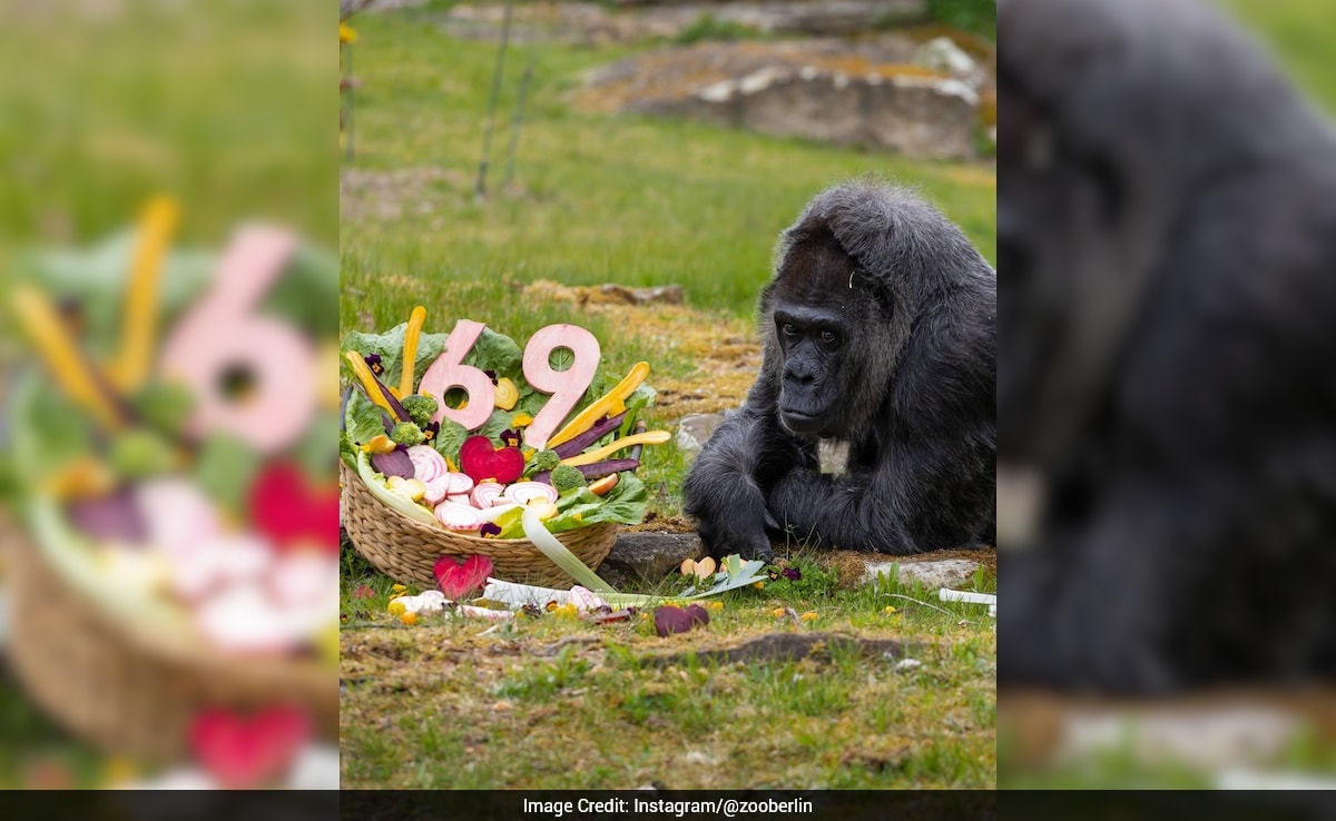 Fatou, the world's oldest gorilla, celebrates her 69th birthday at Berlin Zoo with a special feast.