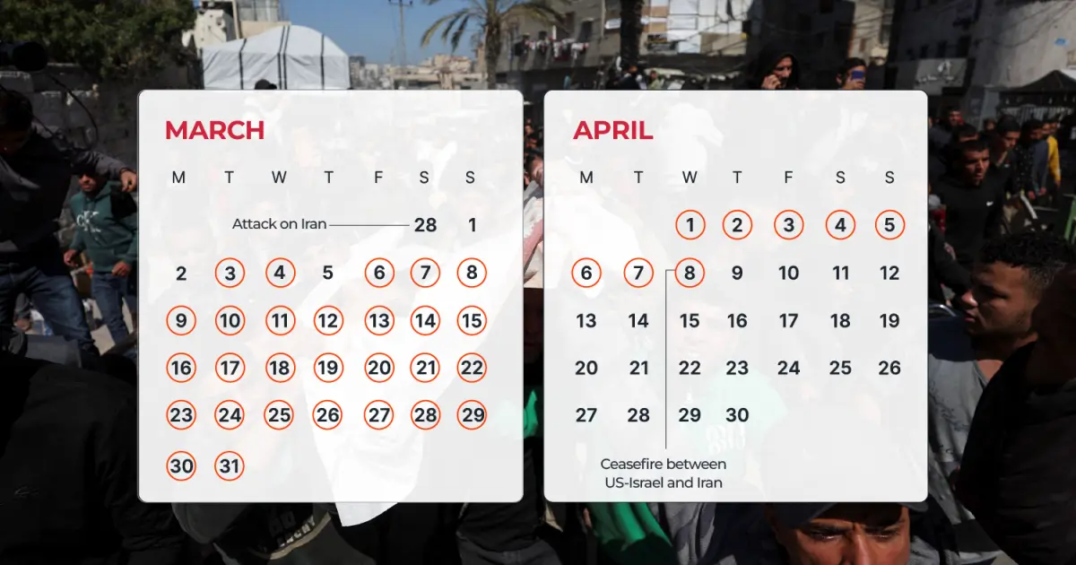 Israel bombed Gaza on 36 of the past 40 days while the war raged in Iran